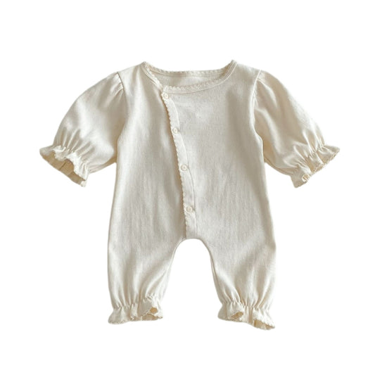 Baby Girl Cotton Jumpsuit with Ruffle Trim