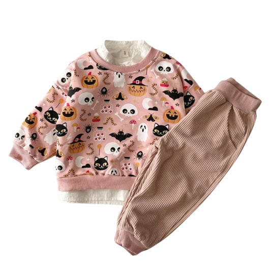 Halloween Pumpkin Sweatshirt and Corduroy Pants Set