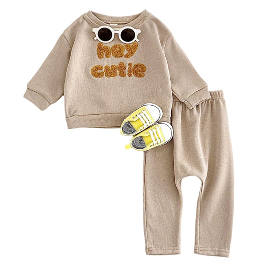 Heart Sweatshirt and Flare Pants Girls Outfit