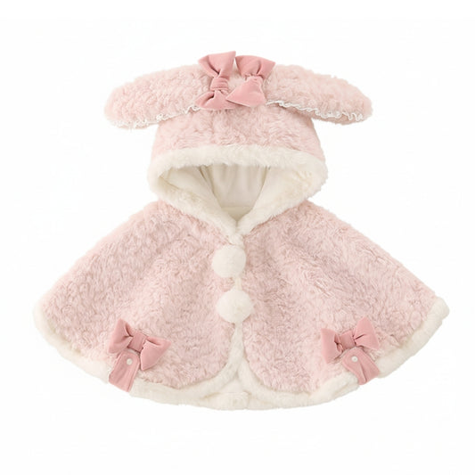 Soft Pink Bunny Ear Hooded Baby Cape
