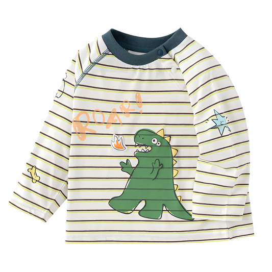 Boys Striped Dinosaur Print Long Sleeve Shirt