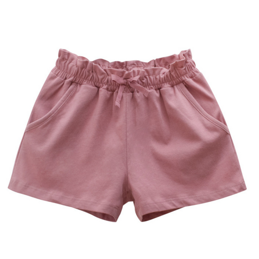 Girls Ruffle Waist Drawstring Cotton Shorts