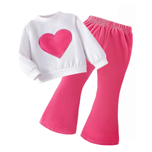 Heart Sweatshirt and Flare Pants Girls Outfit