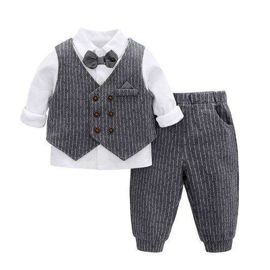 Handsome Pinstripe Vest and Bow Tie Boys Formal Set