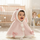 Design: Fluffy bunny ears with bows, pom-pom button closure, and hem bows for extra sweetness